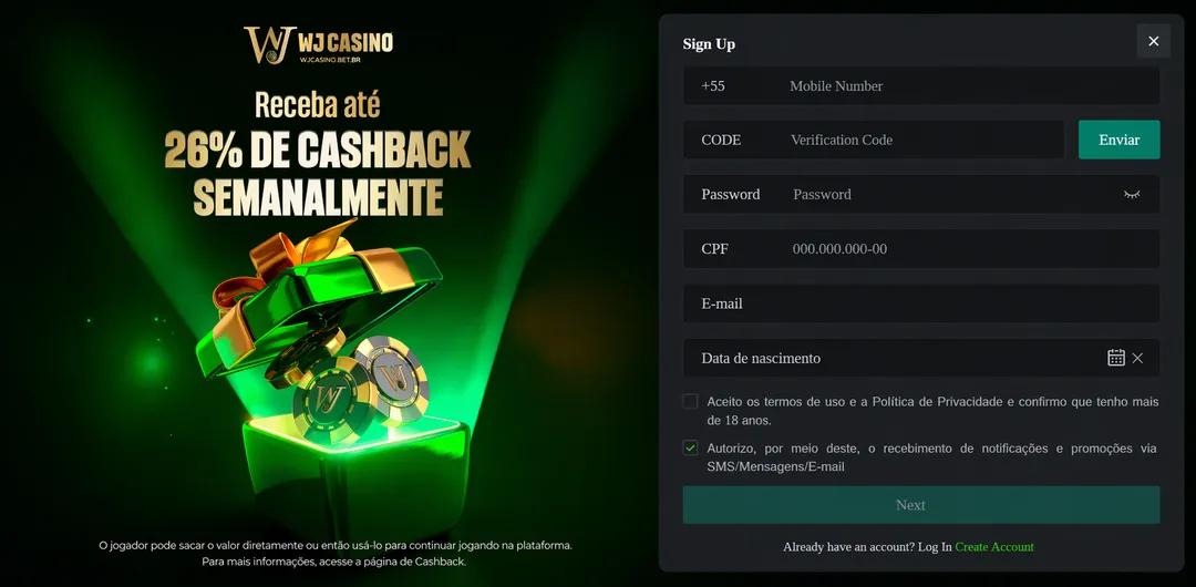 Cadastro e login no WJ Casino: criar conta e recuperar acesso